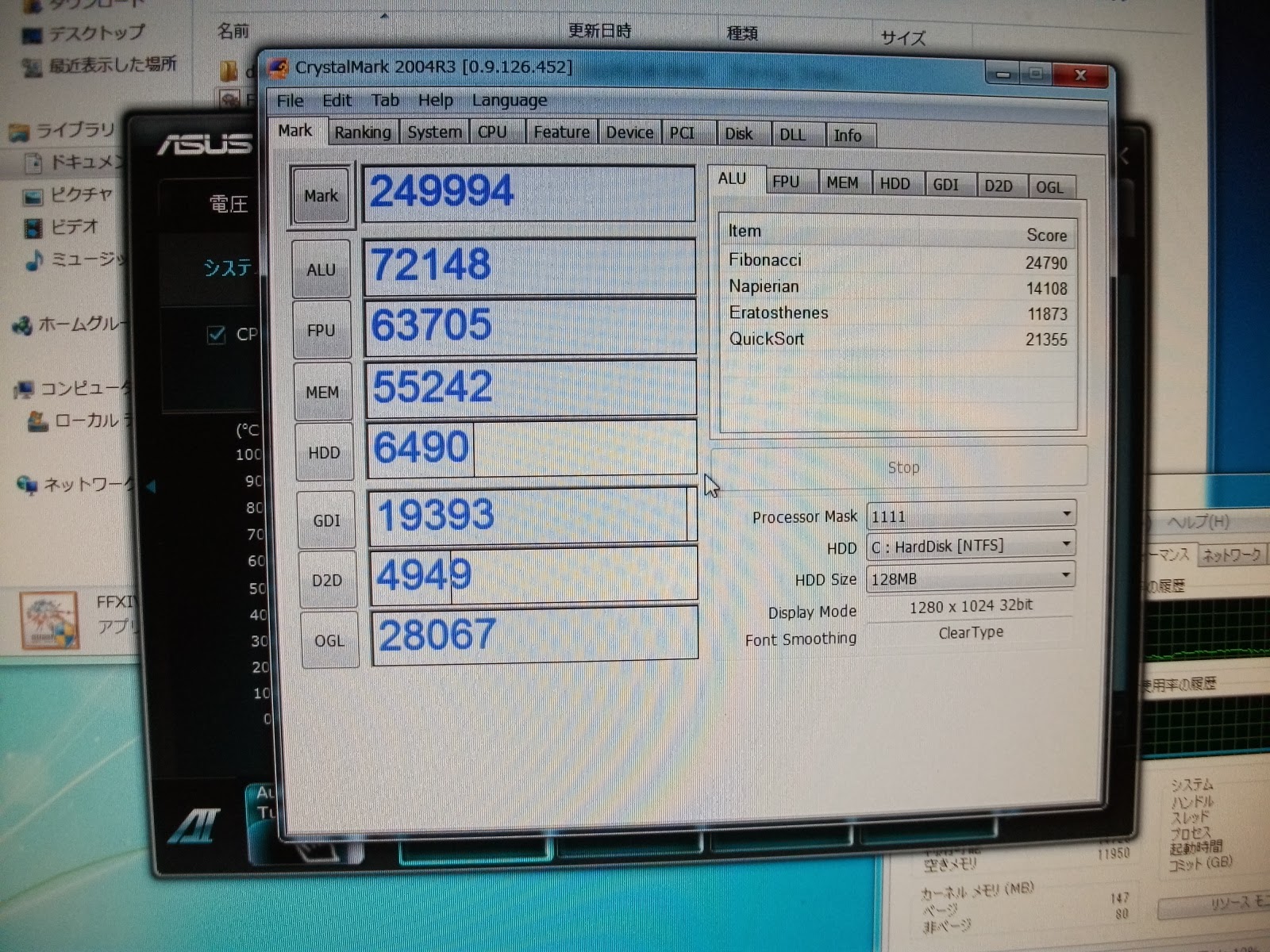 CrystalMark is a useful benchmark suite, that lets you to test your CPU, memory, HDD and video (GDI, Direct Draw, OpenGL) subsystems. The program also shows some information about your system. The report can be saved in a text or HTML file.